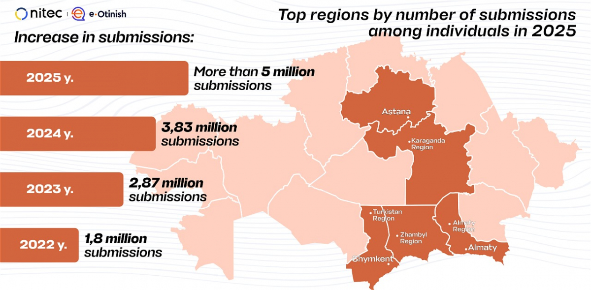 January 22, 2026Now a core instrument of digital government–citizen engagement, eOtinish continues to grow in popularity across Kazakhstan. By the end of 2025, more than 5 million appeals had been submitted through the system, confirming the effectiveness of the new format for handling requests from citizens and businesses under the “Hearing State” concept.