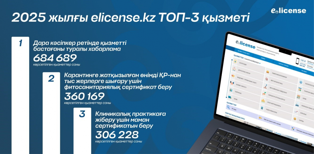2025 жылы eLicense.kz порталы арқылы қазақстандықтарға 3 миллионнан астам мемлекеттік қызмет көрсетілді Баспаға шығару нұсқасы