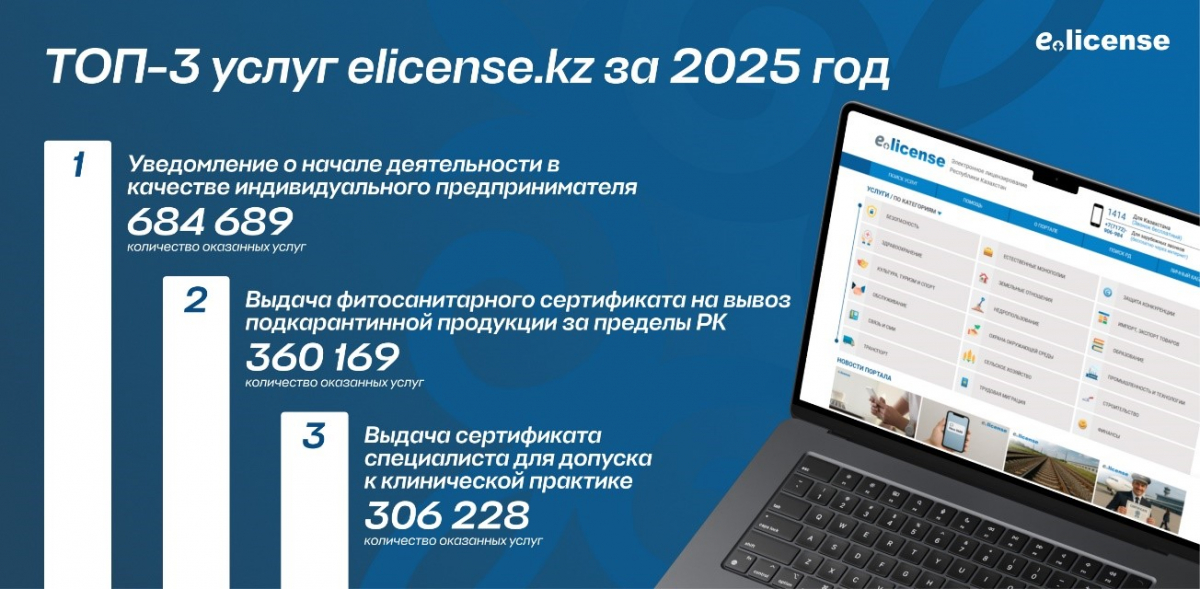 Среди самых востребованных услуг платформы eLicense.kz: